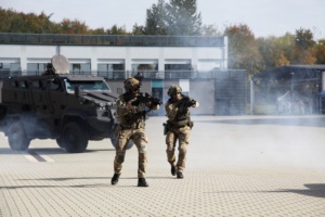 Samodzielny Pododdział Kontrterrorystyczny Policji w Krakowie (SPKP), którego funkcjonariusze przedstawili pokaz taktyki działań bojowych,