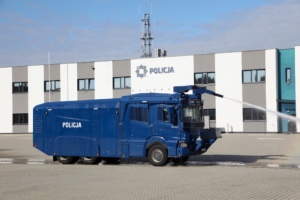 policyjną armatkę wodną, wykorzystywaną podczas działań prewencyjnych,