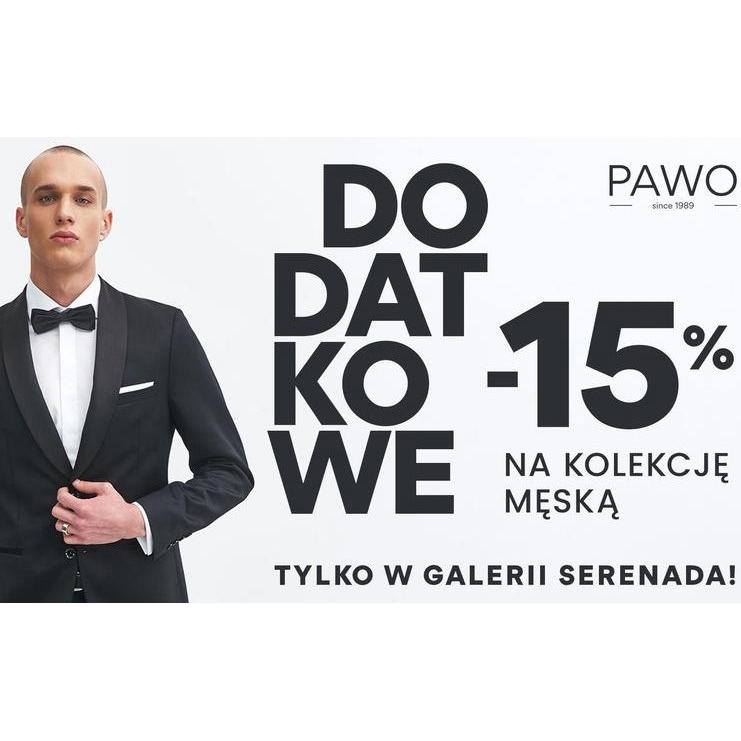 Dodatkowy rabat w wysokości 15% na kolekcję męską przy zakupach w salonach PAWO w całej Polsce oraz w sklepie internetowym: