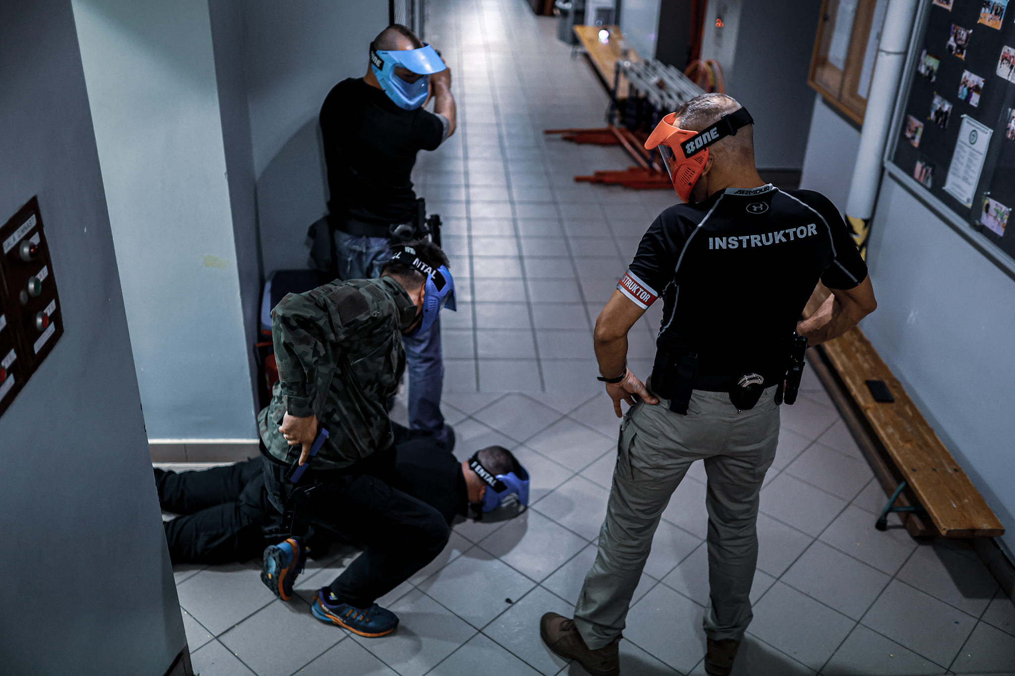Głównym celem szkolenia było doskonalenie reakcji na zagrożenie z kategorii „active shooter”. Uczestnicy mieli okazję uczestniczyć w intensywnych warsztatach, które pozwoliły im nabyć nowe umiejętności oraz zweryfikować posiadane. Wysoki poziom zaangażowania i umiejętności uczestników podkreśla fakt, że wśród nich było kilkunastu doświadczonych instruktorów służb mundurowych oraz systemów walki. To właśnie dzięki ich doświadczeniu i wiedzy szkolenie mogło przebiegać na najwyższym poziomie. Atmosfera podczas szkolenia była niesamowicie pozytywna i produktywna. Uczestnicy mieli nie tylko okazję do pracy nad swoimi umiejętnościami, ale również do wymiany doświadczeń oraz budowania relacji z innymi profesjonalistami z branży.